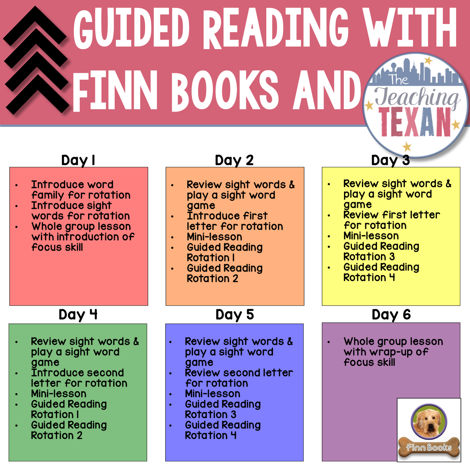 My school is on a 6-day rotation, which in simpler terms means that each Monday is not necessarily the start to our learning week. A “day 1” could fall on any given day of the week (Monday-Friday). I think a great benefit of this is having an extra day to focus on whatever your focus skill may be (visualization, predicting, etc). On days 1 & 6 I teach lessons whole group and focus on the focus skill, while on days 2-5 I use a modified Daily 5 format that includes mini-lessons and centers while I work with small groups.