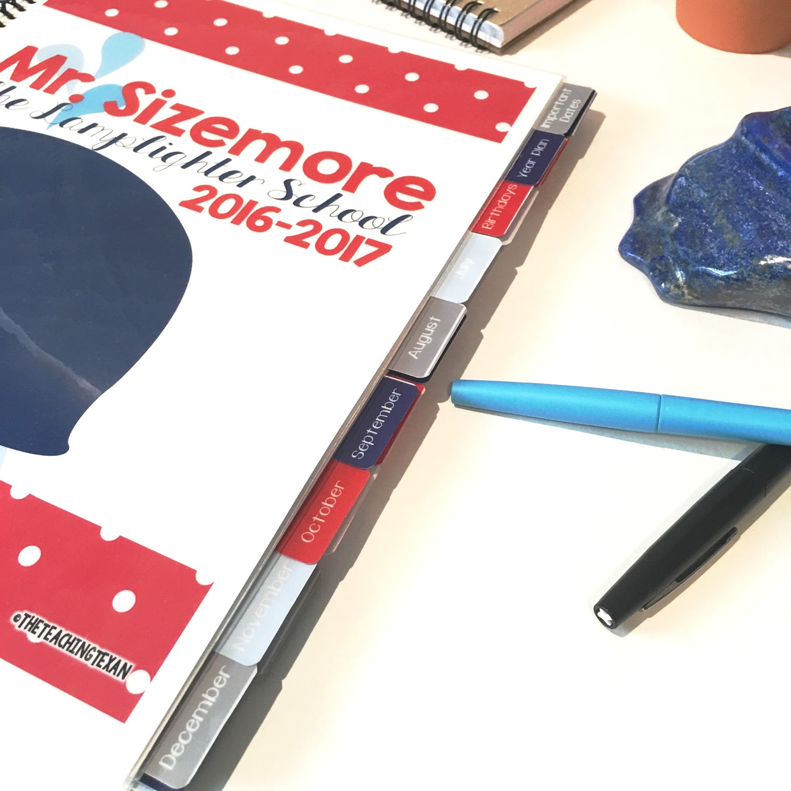 I am beyond excited to share some images of the planner with you today (and I’ll try my best to let the pictures do the talking). Meet the 2016 – 2017 Nautical Theme Teacher Planner!